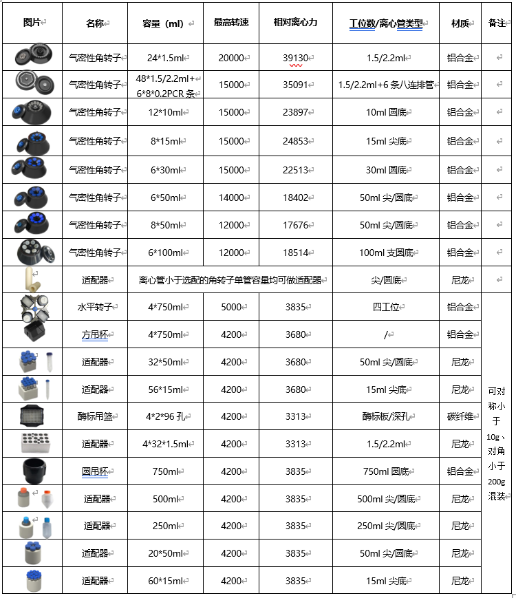 最高转速 | 20000rpm | 最大相对离心力 | 38302Xg |